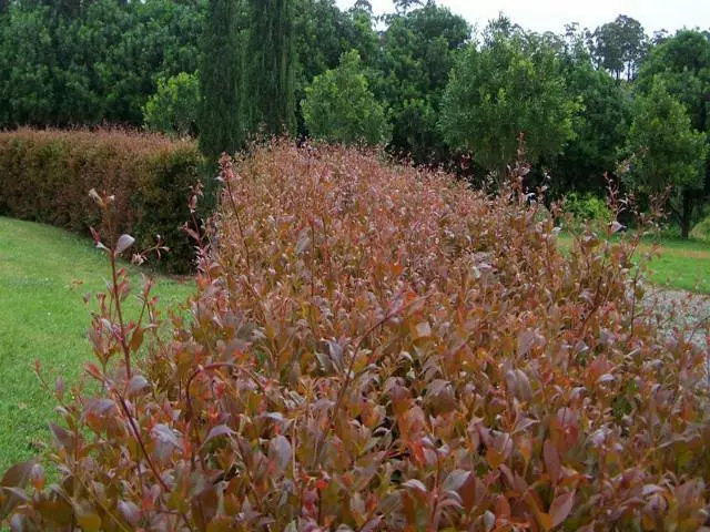 Acmena smithii ‘Fire Screen’ BWNFIR PBR84 Pbr is also known as Firescreen Lilly Pilly. It is a dense, compact, fast-growing shrub tall and thin with coppery-red coloured new growth and bushy all the way down. Responding so favourably to pruning, Fire Screen makes an ideal hedging plant and requires little care other than an adequate water supply. It is a psyllid-resistant variety of Lilly Pilly producing white, fluffy, staminate flowers and in turn, edible purple berries in Spring.
