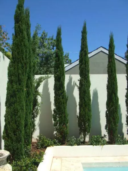 Cupressus sempervirens ‘Nitschke’s Needle’ has a slender columnar growth habit. The tiny, dark green, scale-like, aromatic leaves are arranged in slightly flattened sprays. This handsome conifer, with it’s needle-shaped silhouette, creates the classic avenue planting. It is a commanding feature tree, makes ideal sentries for either side of a gate or doorway or can stand alone as a striking container specimen. It takes approximately 10 years to reach it’s mature height.