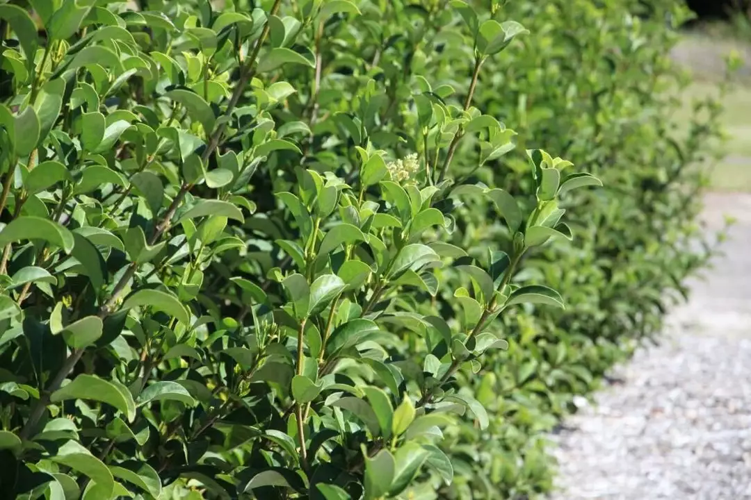 Viburnum Odoratissimum is more commonly known as Sweet Viburnum. It’s evergreen leaves and delicate flowers make it a popular choice that’ll give you a great screen in a fairly short time.