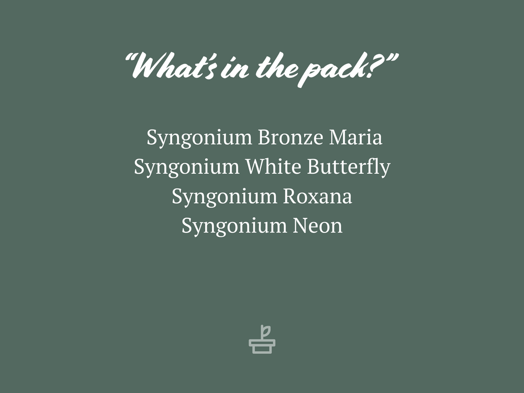 Are you a Syngonium freak? Want one of each variety? This mixed pack of Syngoniums is a real favourite with the collectors. The Syngonium is a low-maintenance houseplant and comes in a great variety of colour combos and sizes. They have great looking foliage in arrow-like shapes hence, often referred to as the arrow plant. This is your go-to, easiest indoor plant!