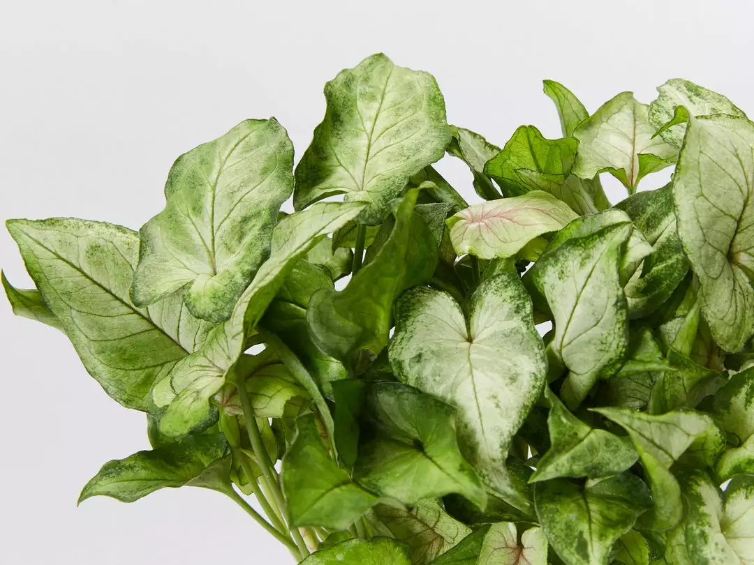 The Syngonium Red Vein is another pretty Syngonium to add to your collection. Young red vein arrowhead plants are bushy and usually pretty full, making them attractive indoor plant choices for coffee tables, side tables, and other surfaces.