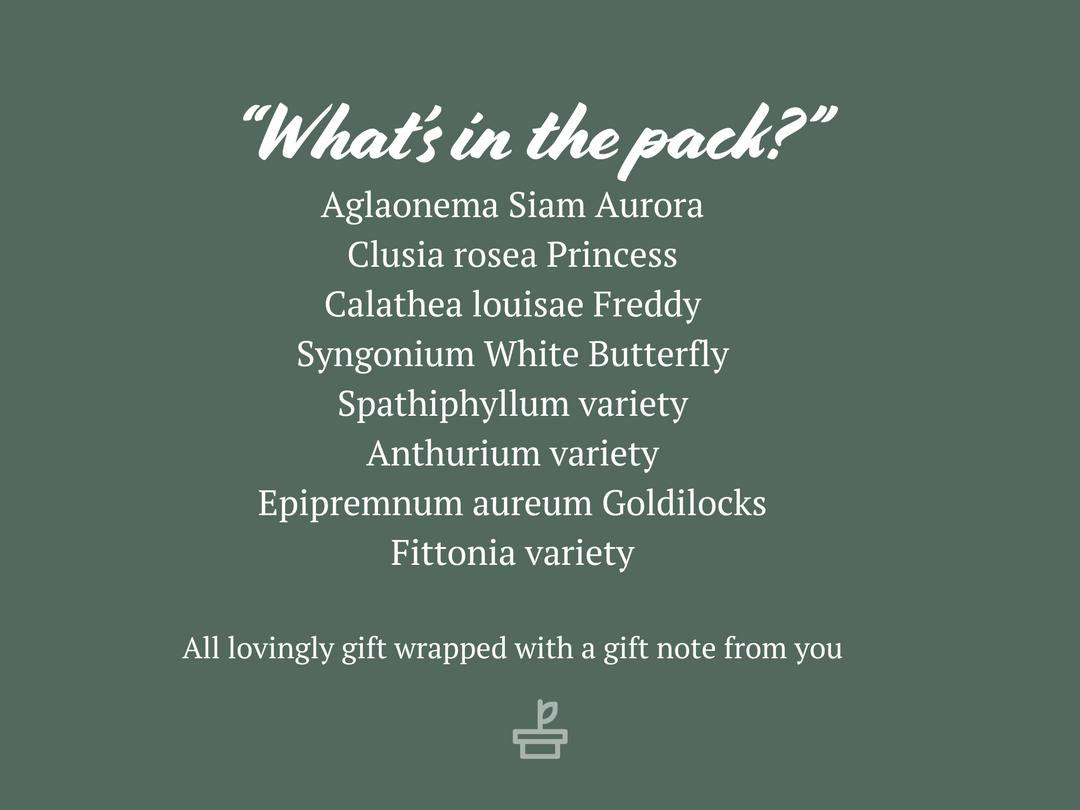 With this beautiful gift pack, you get a fantastic selection of indoor plants delivered straight to the lucky recipient’s door.