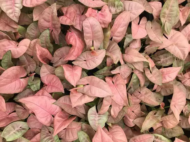 Syngonium Neon has the most adorable arrow-shaped evergreen leaves with blushing dusty green and pink tones – an unusual twist on the standard Syngonium.