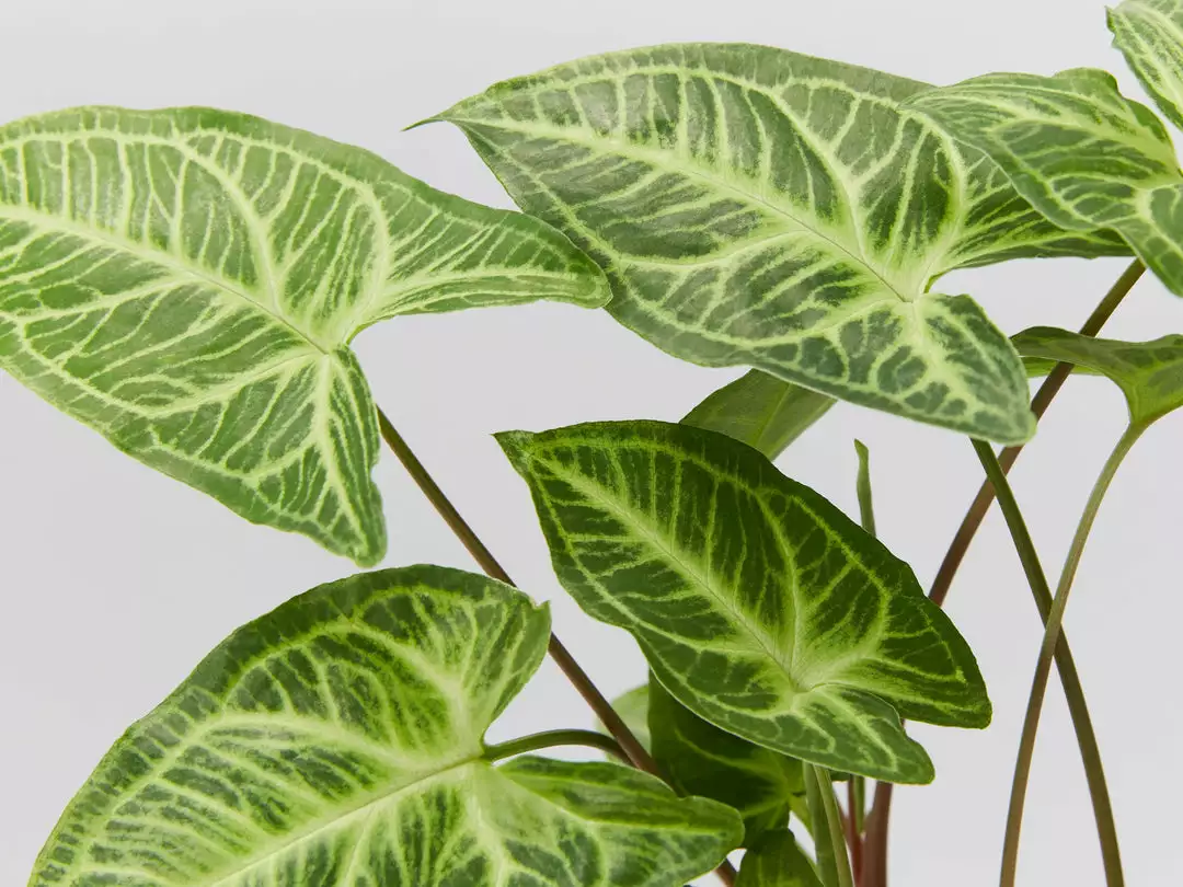 Syngonium Noak is a great trailing houseplant perfect for hanging baskets. Noak has deep green arrow-shaped leaves with patterns of light green and white. The Syngonium is so underrated as a houseplant – super easy to care for and have the most amazing foliage patterns and colours. You couldn’t ask for another.