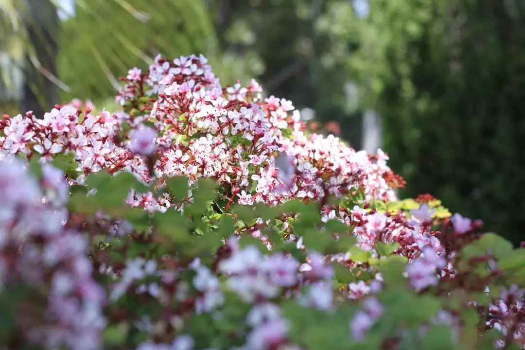 Bauhinia corymbosa was previously known as Bauhinia scandens and commonly known as Climbing Bauhinia or Climbing Butterfly Bush. It is an evergreen, climbing/trailing plant bearing loose clusters of pinkish-rose flowers in Spring and Autumn. The leaves are small, bright green and butterfly-like (folding into two), arranged on slender arching stems.