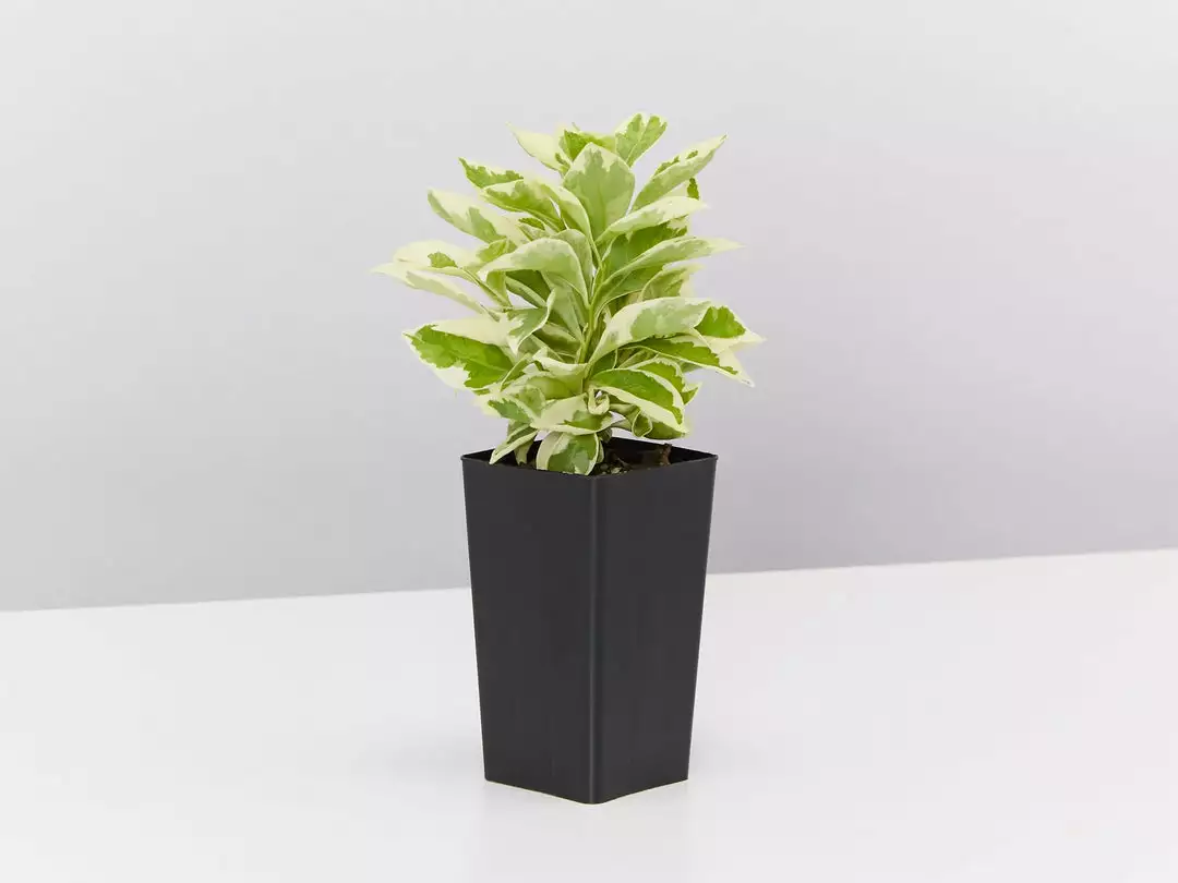 Brunfelsia latifolia compacta variegata is commonly known as “Dwarf Variegated Yesterday Today and Tomorrow”. It’s attractive green and white foliage provides colour all-year-round. The scented tubular flowers are a bonus. The flowers change colour over successive days, opening as purple, fading to lilac and then finally to white. It is an excellent choice for a low maintenance smaller shrub with a compact habit.