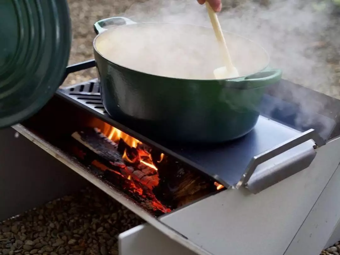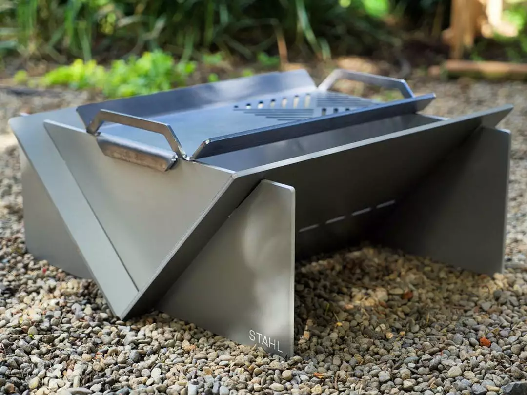 Why should having a smaller fire pit limit your ability to cook over an open fire? With the Stahl® Small Grill Plate, you can barbecue on an open flame or sauté on the hot plate, then take the Grill off for an evening around the fire.