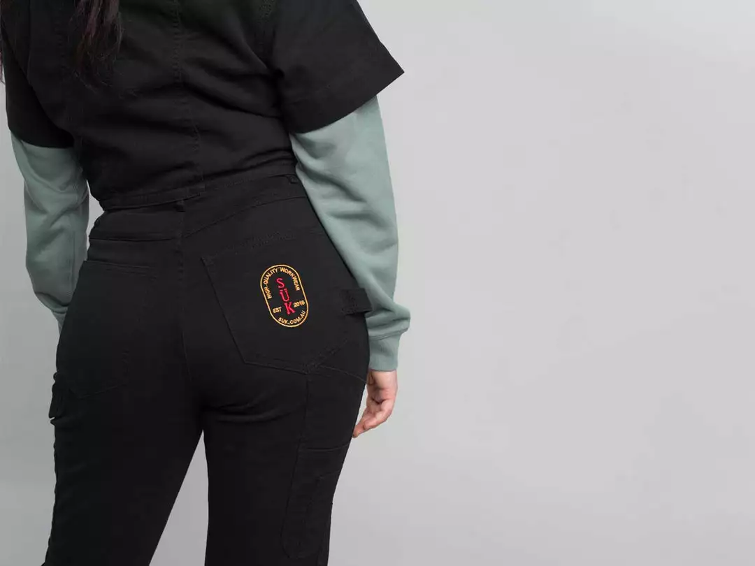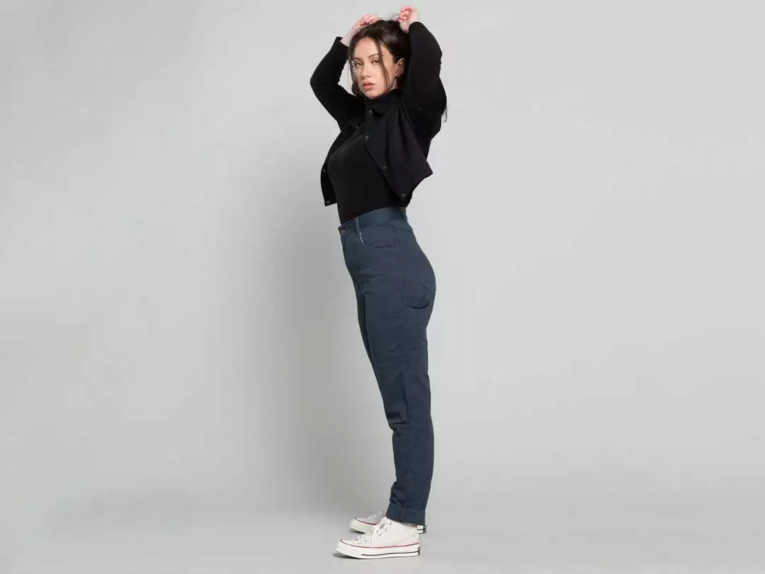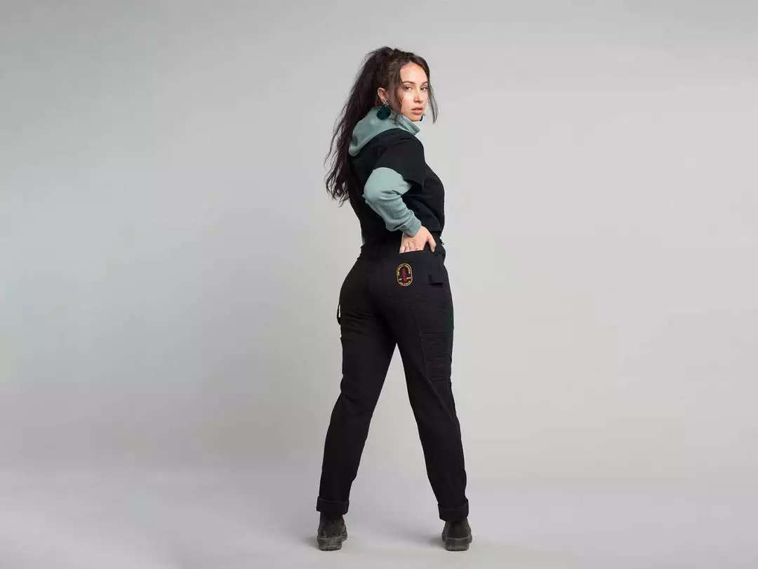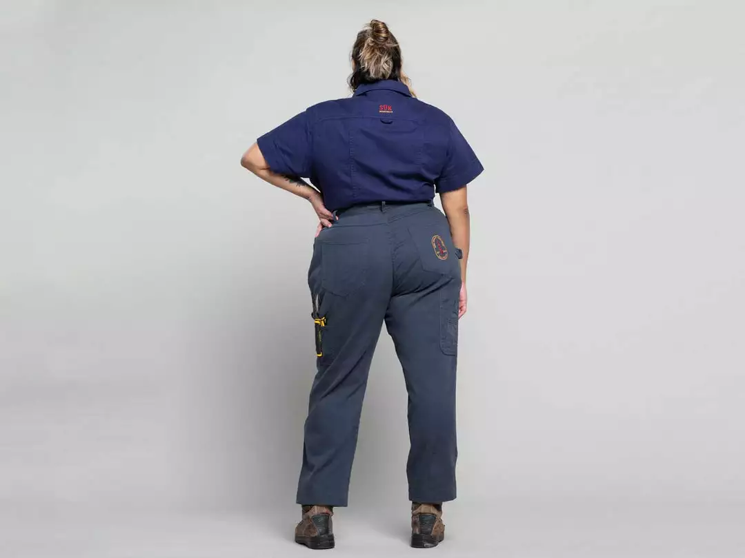 These pants are the answer to the working woman’s slim pant needs. Hugging the ass and tapering down the leg. With a double-layered knee, two leg pockets and a hammer holster, this is function and style. Comfortable and flattering whilst still being durable is a CRAZY achievement.Â