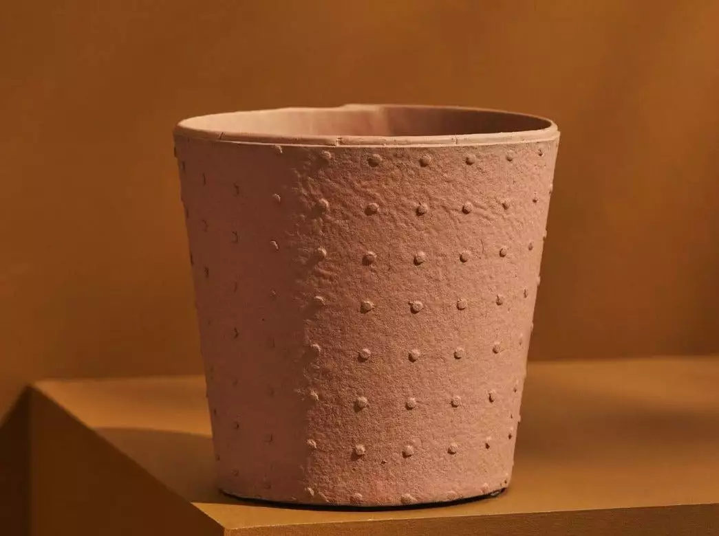 Meet Dotty the conical pot that is embossed with delicate patterns of dots in soft tones of pale blush, antique white and sage green.